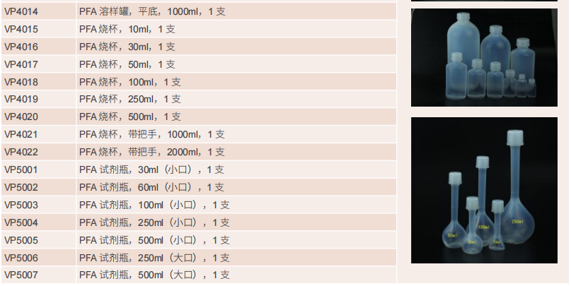 PFA 或全氟烷氧基是 FEP 的高溫版本。PFA 具有與 FEP 相似的特性,但由于其熔體粘度低于 PTFE,因此可以在工作溫度上限達 + 260℃的環(huán)境下使用,同時保持可熔融加工。PFA 具有優(yōu)良的化學耐受性,并且可在較寬的溫度范圍內(nèi)穩(wěn)定工作。PFA 呈半透明,柔韌,并且由于其高密度而感覺很重。PFA 具有惰性和低粘合性,溶出物和痕量金屬含量較低。它具有較寬的含氟聚合物溫度范圍,從 - 270°C 到 +260℃,在整個范圍內(nèi)具有良好的化學耐受性。PFA 樣品瓶是需要高靈敏度的應用的理想選擇。這些產(chǎn)品是半導體生產(chǎn)和微采樣的優(yōu)質(zhì)選擇。