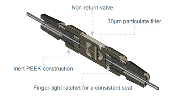 1. 氣體單向止回閥可防止酸性樣品或沖洗溶液倒吸到儀器內