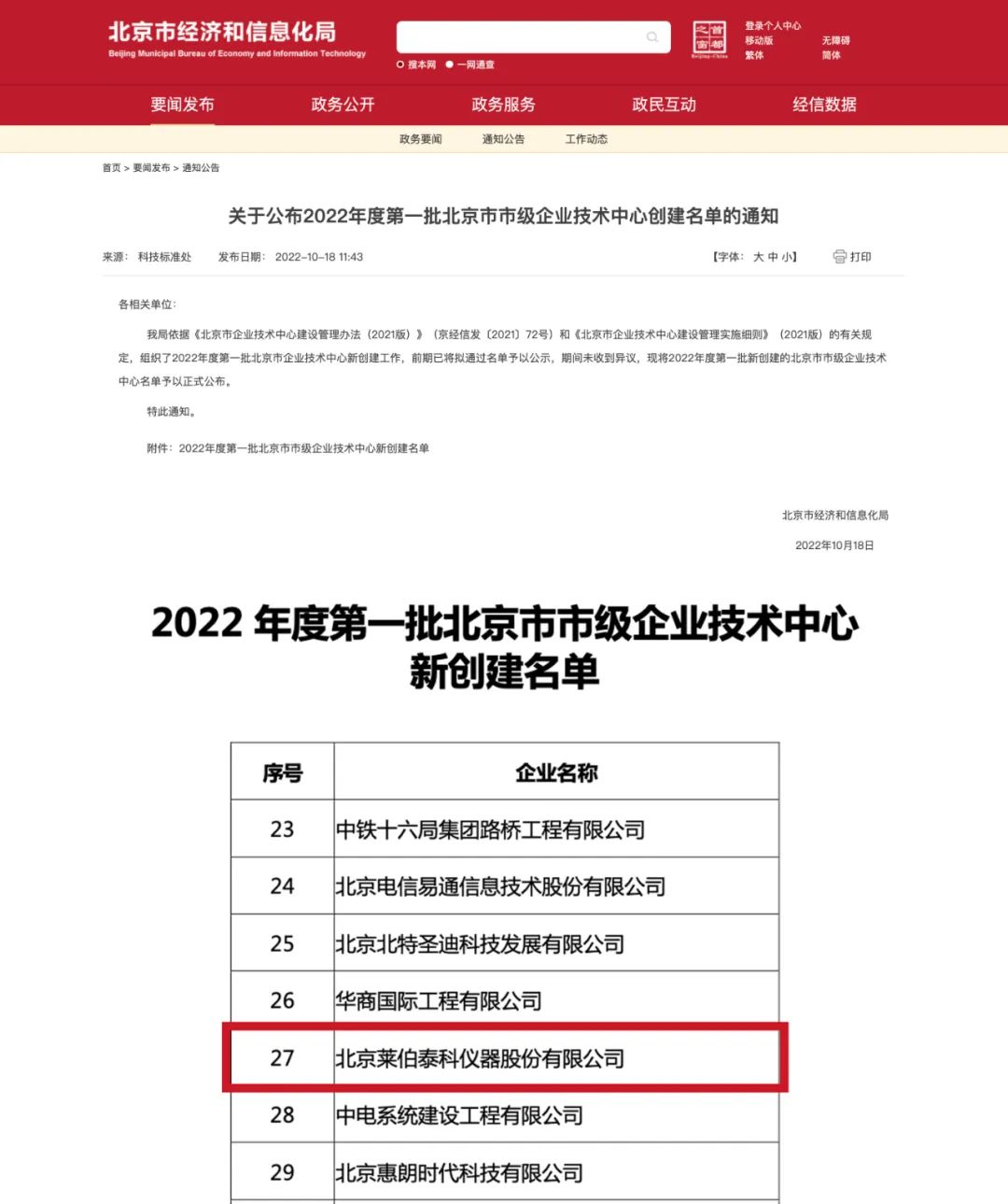 10月18日,北京市經(jīng)濟(jì)和信息化局正式發(fā)布了2022年度第一批北京市市級企業(yè)技術(shù)中心名單。憑借自身的科技研發(fā)實(shí)力、自主創(chuàng)新能力和對科學(xué)儀器產(chǎn)業(yè)的賦能、帶動(dòng)作用,北京萊伯泰科儀器股份有限公司(股票代碼:688056.SH)榮獲“北京市企業(yè)技術(shù)中心”認(rèn)定。