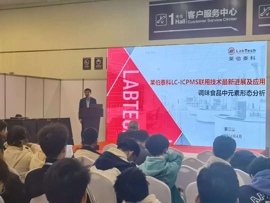 在大會(huì)現(xiàn)場(chǎng),萊伯泰科產(chǎn)品經(jīng)理董江山發(fā)表了題為《萊伯泰科LC-ICPMS聯(lián)用技術(shù)最新進(jìn)展及應(yīng)用——調(diào)味食品中元素形態(tài)分析》的精彩報(bào)告。他深入剖析了萊伯泰科在電感耦合等離子體質(zhì)譜聯(lián)用技術(shù)領(lǐng)域的研究成果,以及這一技術(shù)在調(diào)味食品元素形態(tài)分析中的應(yīng)用。報(bào)告期間,臺(tái)下掌聲雷動(dòng),各位專家學(xué)者對(duì)萊伯泰科的技術(shù)實(shí)力和產(chǎn)品應(yīng)用給予了高度評(píng)價(jià)。報(bào)告結(jié)束后,眾多老師紛紛來到萊伯泰科展臺(tái)進(jìn)行咨詢,產(chǎn)品經(jīng)理及工程師們耐心解答,現(xiàn)場(chǎng)氛圍熱烈。