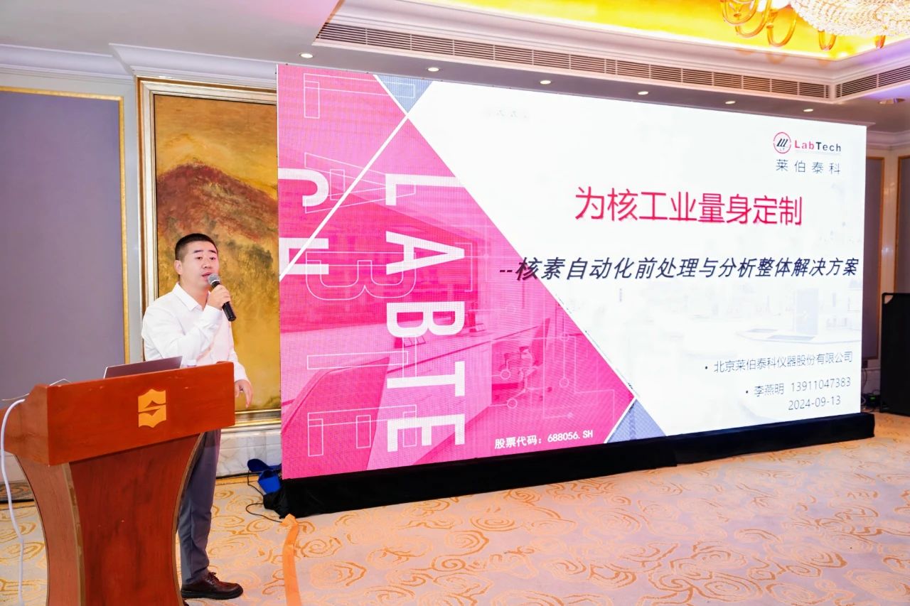 作為受邀嘉賓,萊伯泰科在“電離輻射計量&教育與科普”分會場中展示了其在核素檢測領(lǐng)域的創(chuàng)新成果。萊伯泰科核素及自動智能分析檢測事業(yè)部銷售總監(jiān)李燕明發(fā)表了《為核工業(yè)量身定制——核素自動化前處理與分析整體解決方案》的報告。他深入剖析了當(dāng)前我國核素檢測標(biāo)準(zhǔn)方法中前處理技術(shù)的現(xiàn)狀與挑戰(zhàn),并強調(diào)了高效自動化前處理解決方案的迫切需求。