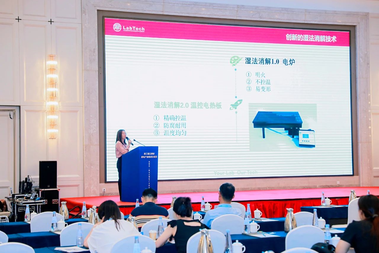 會(huì)議期間,專家學(xué)者們圍繞原材料、市場、技術(shù)等多個(gè)維度進(jìn)行了深入探討,并就鋰電回收再利用提出了獨(dú)到見解,使與會(huì)者收獲頗豐。萊伯泰科高級(jí)產(chǎn)品經(jīng)理周思佳女士發(fā)表了題為《聚焦前處理—鋰電池產(chǎn)業(yè)鏈元素分析解決方案》的演講,詳細(xì)闡述了萊伯泰科在鋰電行業(yè)原料鋰礦樣品、正極材料多種鋰鹽樣品及負(fù)極材料石墨樣品的元素分析整體解決方案,涵蓋了全自動(dòng)消解儀、超級(jí)微波消解儀、全自動(dòng)加液儀及全自動(dòng)液體處理平臺(tái)等多種前處理及輔助儀器。周經(jīng)理的精彩報(bào)告與耐心解答贏得了與會(huì)專家、老師的高度贊譽(yù)。