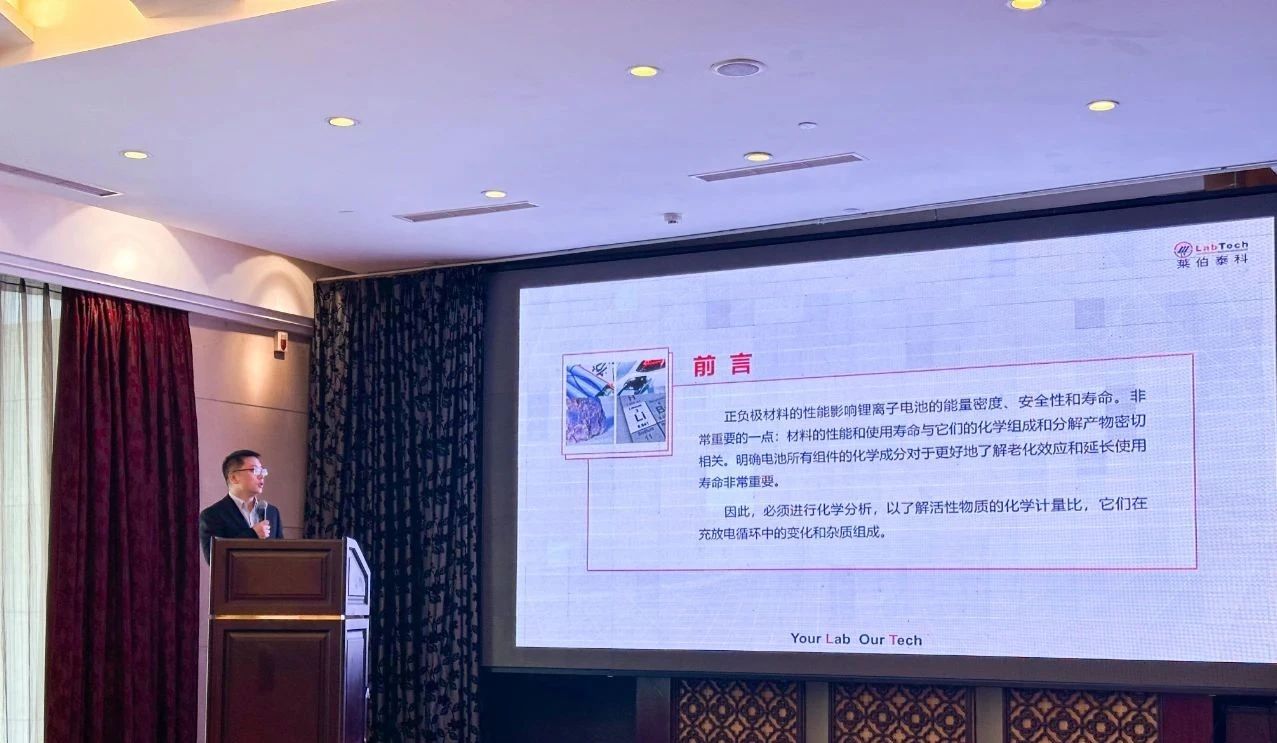 本次會(huì)議重點(diǎn)聚焦于原子光譜質(zhì)譜技術(shù)的前沿領(lǐng)域,積極促進(jìn)了國(guó)內(nèi)外的學(xué)術(shù)交流互動(dòng),而萊伯泰科在會(huì)議期間充分展示了其在科學(xué)儀器國(guó)產(chǎn)替代進(jìn)程中所取得的顯著突破。 在此次研討會(huì)上,萊伯泰科攜自主研發(fā)的 LabMS 5000 電感耦合等離子體串聯(lián)質(zhì)譜儀驚艷亮相。萊伯泰科質(zhì)譜產(chǎn)品經(jīng)理陳磊發(fā)表了題為《萊伯泰科原子光譜技術(shù)進(jìn)展及無(wú)機(jī)元素檢測(cè)一站式解決方案》的報(bào)告。在報(bào)告中,陳磊詳細(xì)闡述了萊伯泰科如何在鋰電池產(chǎn)業(yè)鏈的各類(lèi)正負(fù)極材料、隔膜材料、電解液以及濕化學(xué)電子品的復(fù)雜前處理和分析檢測(cè)環(huán)節(jié)提供強(qiáng)有力的技術(shù)支持,為我國(guó)新能源汽車(chē)產(chǎn)業(yè)的穩(wěn)健發(fā)展貢獻(xiàn)關(guān)鍵力量,該演講收獲了與會(huì)者的一致贊譽(yù)。