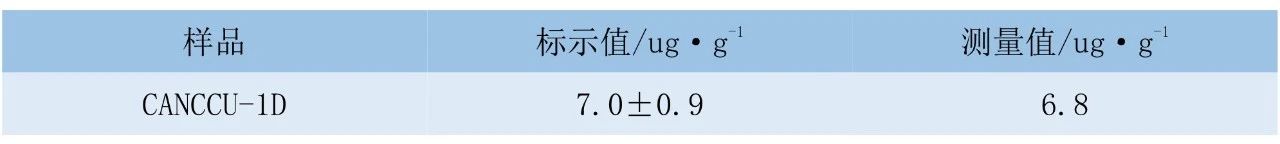 按試驗(yàn)方法對(duì)銅精礦標(biāo)準(zhǔn)物質(zhì)CANCCU-1D 進(jìn)行測(cè)定,結(jié)果見(jiàn)下表。