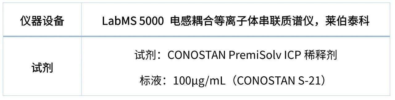 本實(shí)驗(yàn)中,無需繁復(fù)的樣品前處理,直接加入CONOSTAN PremiSolv ICP稀釋劑,混勻后作為樣品。