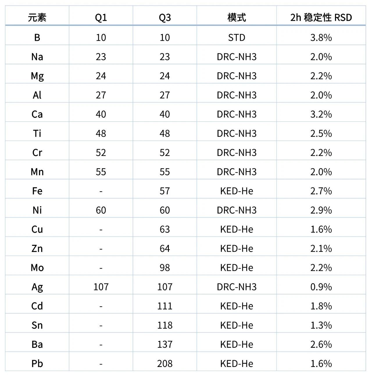 在儀器與方法的長(zhǎng)期穩(wěn)定性方面,所有目標(biāo)元素的相對(duì)標(biāo)準(zhǔn)偏差(RSD)均在 0.9%~3.8% 之間,其中 Ag、Sn、Cu、Pb 等元素的 RSD 低于 2.0%,儀器保持了極佳的運(yùn)行穩(wěn)定性。