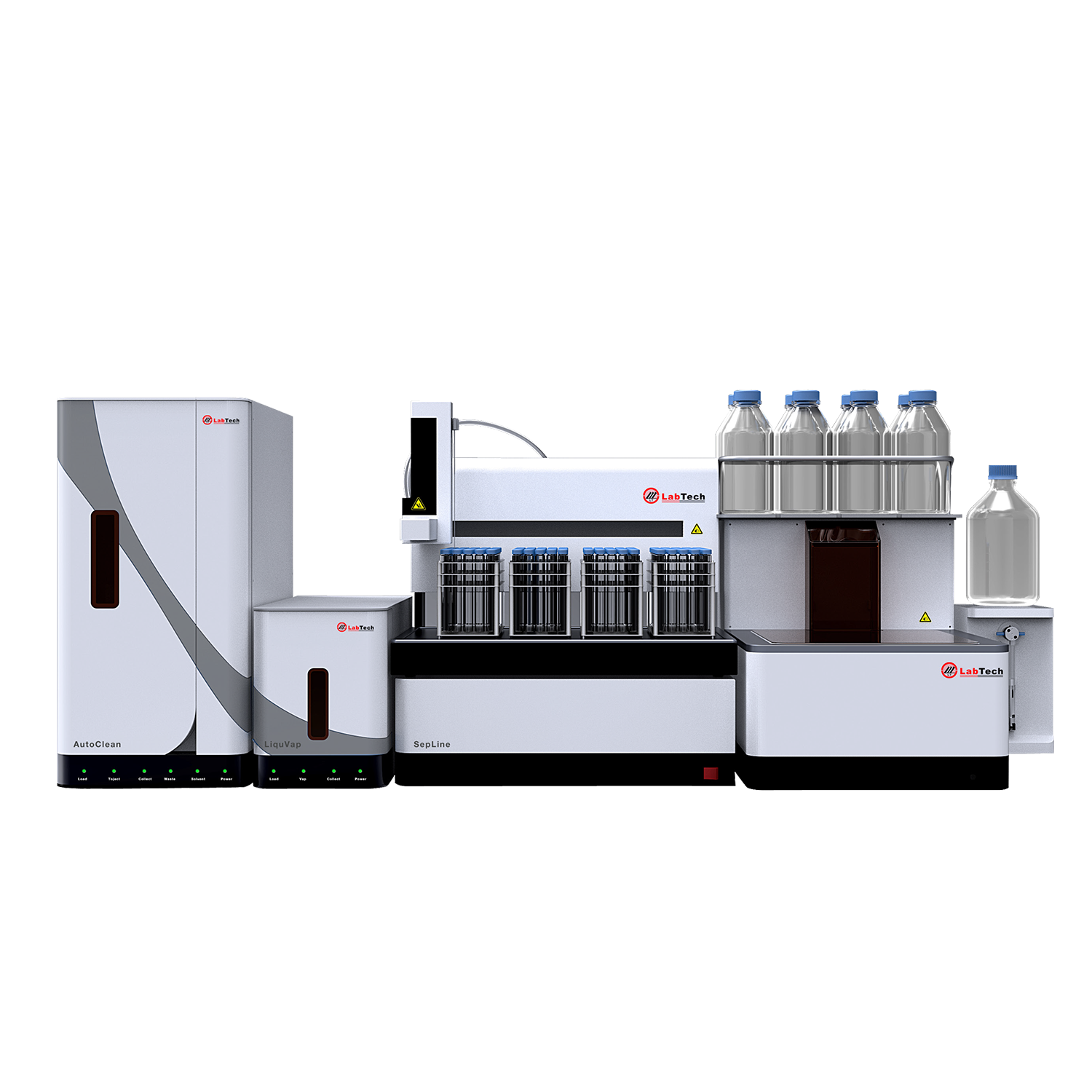 包括 PrepElite-GVS(凝膠凈化 - 在線濃縮)、PrepElite-SV(固相萃取 - 在線濃縮)、PrepElite-GVS(凝膠凈化 -在線濃縮 - 固相萃?。┤钋疤幚砥脚_,各部分既可以聯(lián)機工作,也可以單獨使用。