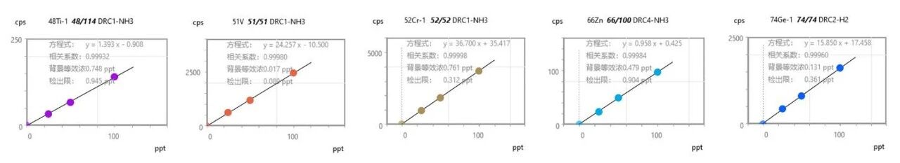 圖1 9.8%硫酸中Ti、V、Cr、Zn、Ge的標準曲線