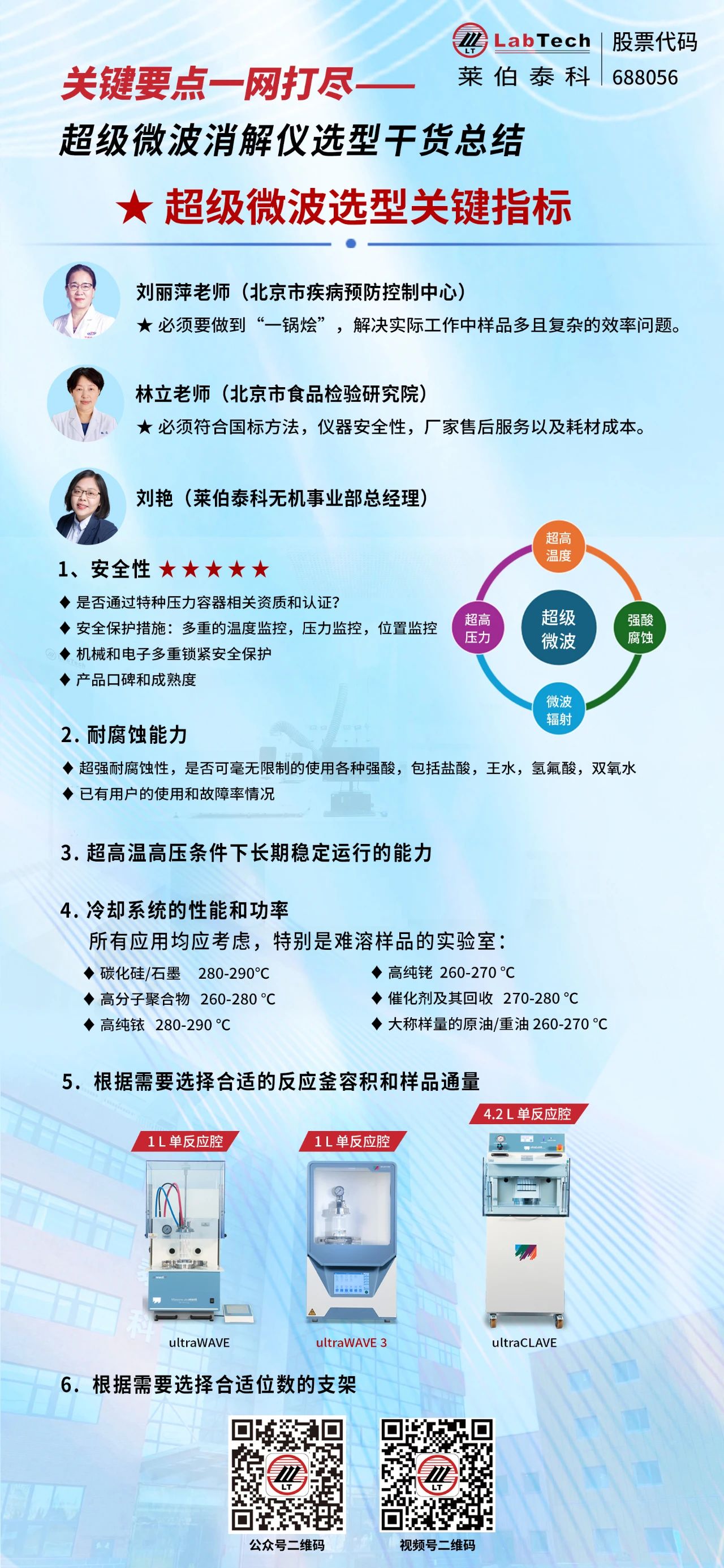 2024年3月20日,在“超級(jí)微波消解儀選型直播”活動(dòng)中,北京市疾控中心劉麗萍、北京市食品檢驗(yàn)研究院儀器室主任林立與萊伯泰科無機(jī)事業(yè)部總經(jīng)理劉艷一起揭秘了超級(jí)微波的技術(shù)真諦,探討了選型要點(diǎn),現(xiàn)將直播中的干貨總結(jié)以饗讀者。