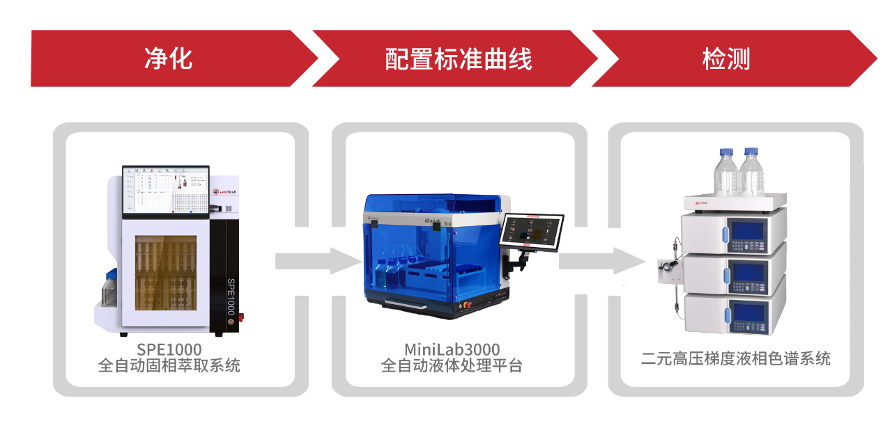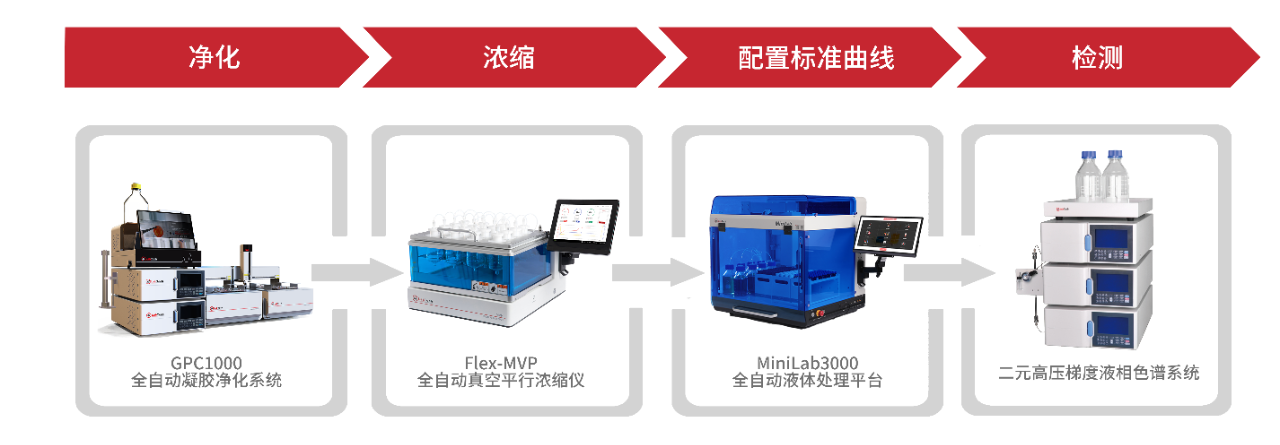該方案可以實(shí)現(xiàn)自動化、高通量的提取、凈化,有效避免和減少有機(jī)試劑對分析人員造成的健康危害,減少人員用量、減少人為誤差,方法準(zhǔn)確性好、精密度高、可以實(shí)現(xiàn)高通量自動化的檢測。