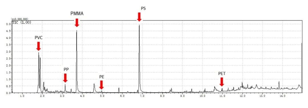 利用熱裂解分析微塑料,主要是通過裂解腔的高溫來分解塑料為裂片小分子,這些小分子可以在GC-MS得到分析,從裂片小分子中挑選定量組分和定性組分,則可對(duì)塑料進(jìn)行定性定量分析。