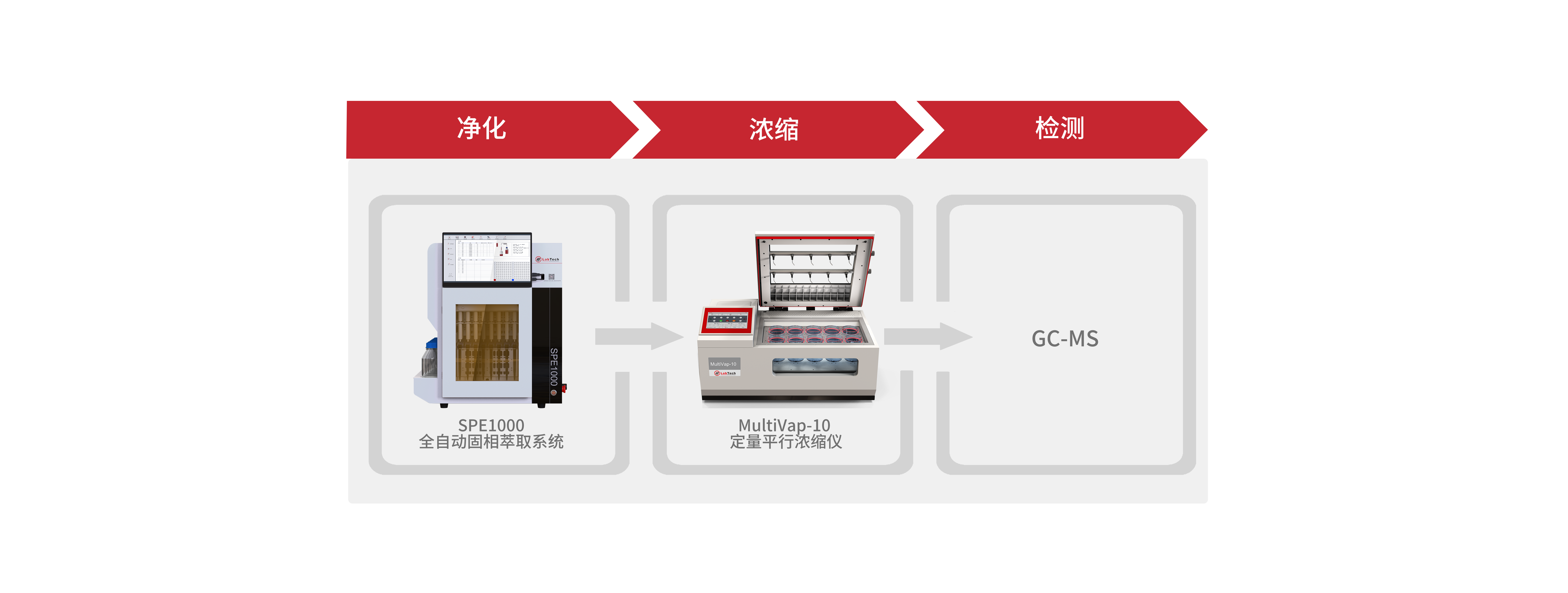 本方案參考《HJ 715-2014 水質(zhì) 多氯聯(lián)苯的測定 氣相色譜-質(zhì)譜法》和《HJ 902-2017 環(huán)境空氣 多氯聯(lián)苯的測定 氣相色譜-質(zhì)譜法》,使用SPE 1000全自動(dòng)固相萃取系統(tǒng)富集、MultiVap-10多通道平行濃縮儀進(jìn)行濃縮,并采用GC-MS檢測,建立了一套水中多氯聯(lián)苯的測定方法。該方案可以實(shí)現(xiàn)自動(dòng)化、高通量的凈化和濃縮,有效避免和減少有機(jī)試劑對(duì)分析人員造成的健康危害,減少人員用量、減少人為誤差。檢測結(jié)果證明使用萊伯泰科的全自動(dòng)固相萃取凈化、多通道平行濃縮儀濃縮,方法準(zhǔn)確性好、精密度高、可以實(shí)現(xiàn)高通量自動(dòng)化的檢測。